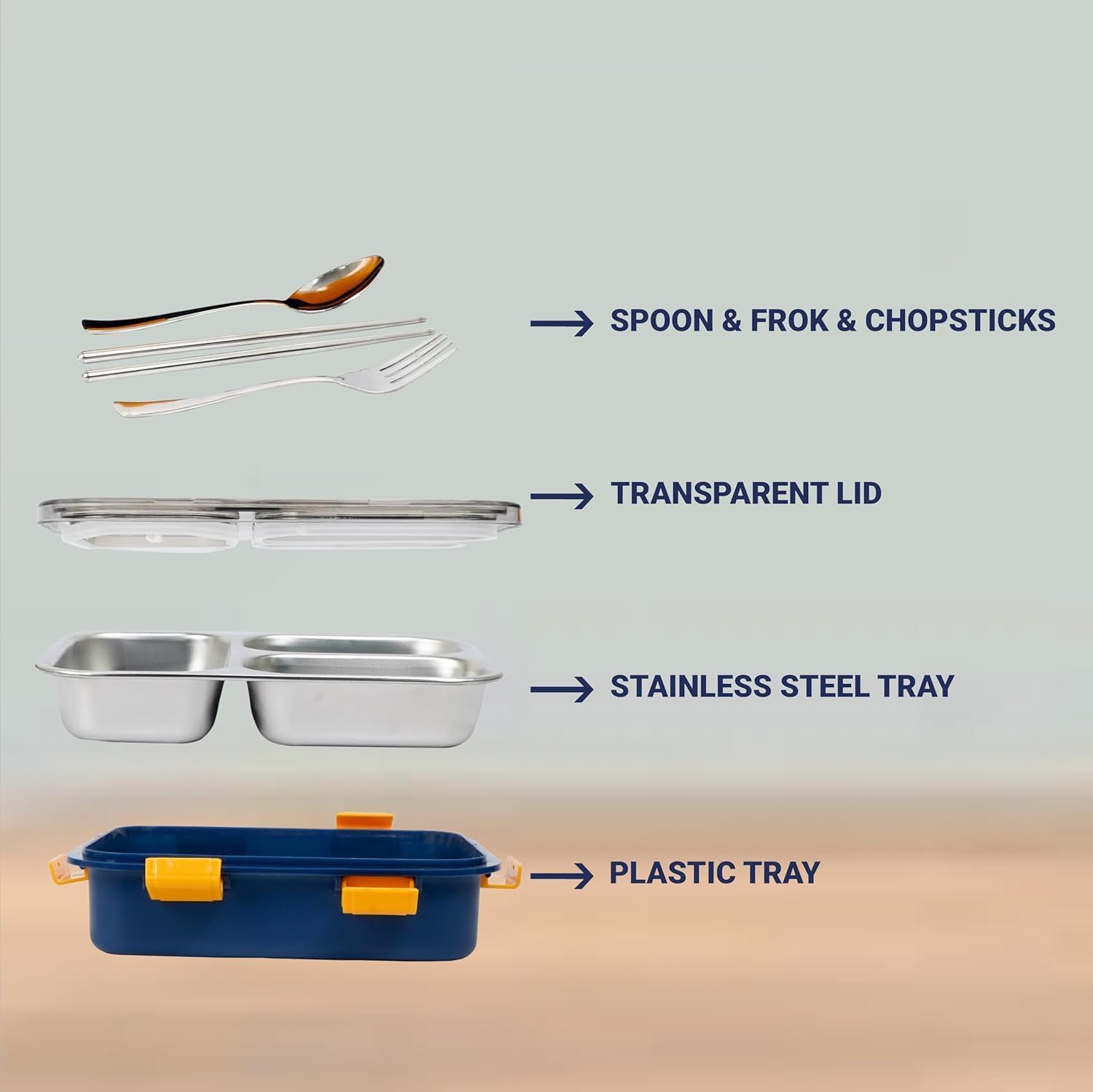 LEAK-PROOF: The lid fits tightly to the stainless steel food tray, so food does not run from one compartment to another, preventing food from mixing. With a 100% leak-proof, you can store liquids such as sauces or yogurt in it.